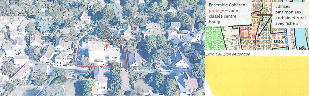 Le terrain rectangulaire sur la rue du Maréchal Leclerc s’inscrit au sein d’un tissu résidentiel pavillonnaire, en secteur protégé ABF.